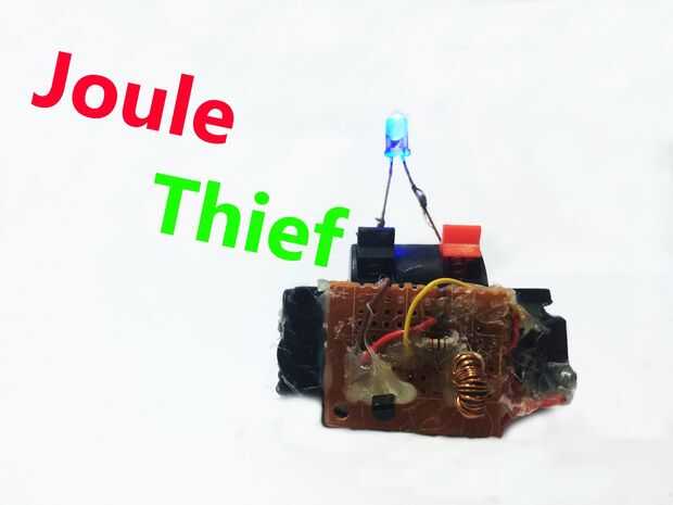 Un ladrón de joule es un minimalista auto-oscilante voltaje que es pequeño, bajo costo y fácil de construir, generalmente se utilizan para cargas ligeras.Se puede utilizar casi toda la energía en una batería eléctrica de unicelular, incluso muy por d