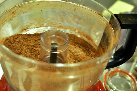 Procesar el chocolate en un procesador de alimentos hasta que quede granulada y similar a la arena. Añadir el azúcar y el cacao en polvo y licúe hasta que polvoriento (no ser súper suave).