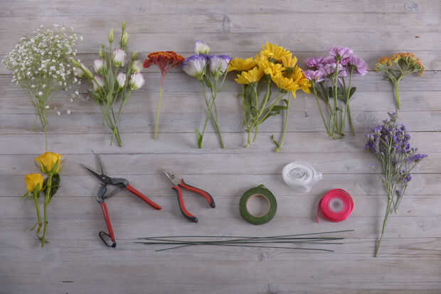 En cuanto a flores, como esta corona de flores es ideal para primavera y verano, le recomendamos usar colores audaces y brillantes para que coincida con. Como siempre, no dude en adaptar y cambiar nuestras instrucciones para lo que usted desea tener en su corona. Aquí hemos utilizado: