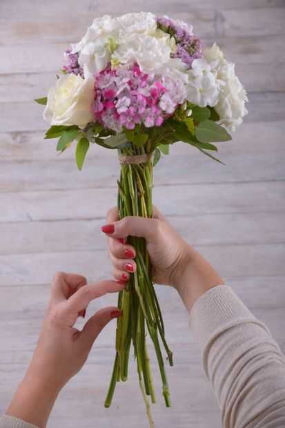 Este paso es importante no sólo en términos de garantizar que tus flores grandes mirada, sino también por lo que es práctico! Si usted o la novia llevará a cabo el ramo durante un tiempo, desea asegurarse de que hay espacio para sostenerlo cómodamente.