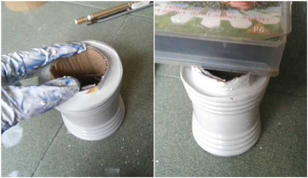 Después de llenar 2/3 del recipiente primario, poner el contenedor secundario justo en medio de él y empújelo suavemente.