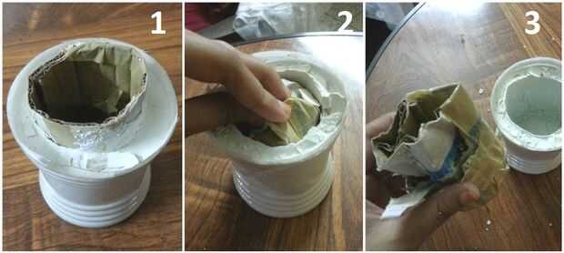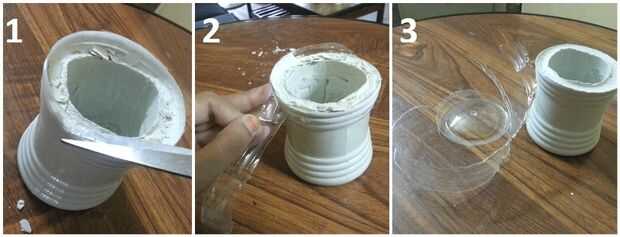 Cuando hayas terminados de secado, retire con cuidado los recipientes. El contenedor secundario se puede quitar fácilmente, pero tendrás que trabajar duro y con cuidado con el envase primario. El contenedor primario (molde principal) no saldrá fácilmente. Tendrás que usar una tijera o anti-cortador de cortar el envase primario. En primer lugar el contenedor secundario y luego el contenedor primario.