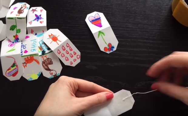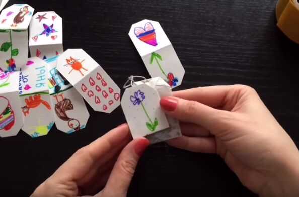 BRICOLAJE con niños para el día de la madre. Caja de regalo té y etiquetas de té. (3 / 8 paso)