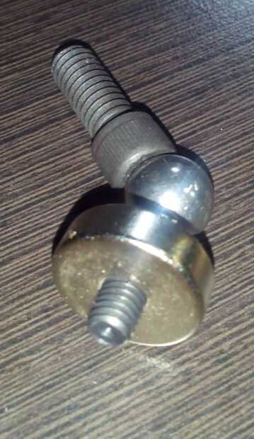 Para construir la articulación, empuje el perno M6 a través del imán, bastante que tocar la cabeza del perno. Coloque la bola de acero en el lado del perno donde usted coloque la llave de allen. Coloque el segundo tornillo de M8 en la bola de acero.