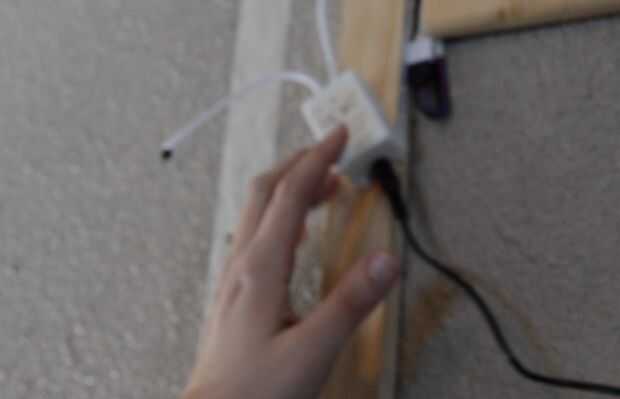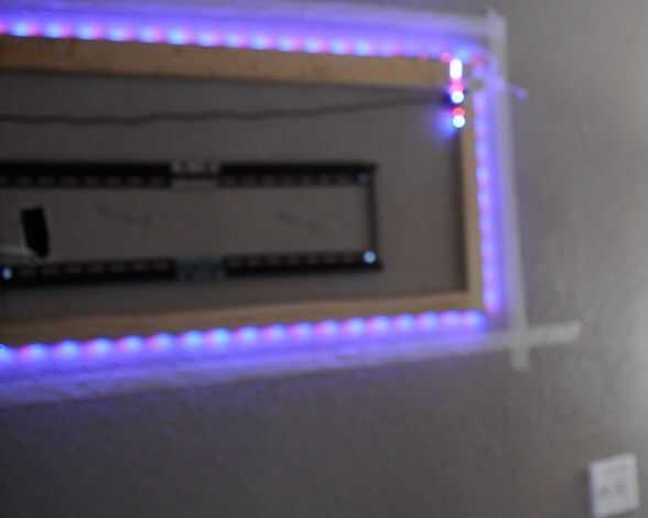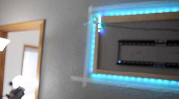 Dependiendo del tipo de luz LED y mando a distancia que compra, puede que necesite tener una línea clara del sitio para el receptor remoto (que viene con el kit de luz de LED). En la foto de arriba se puede ver la caja con una cuerda blanca colgando de él. Este cable es el receptor de control de quitar. Para nuestra unidad, necesitábamos una línea clara del sitio para el receptor remoto.