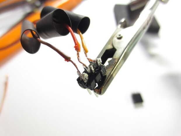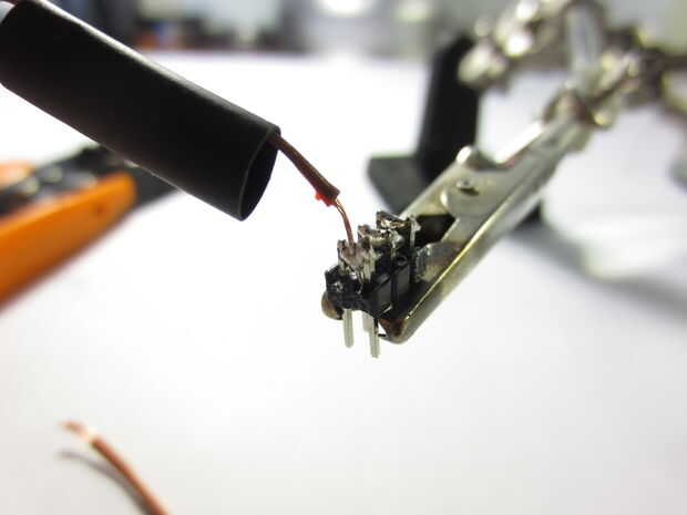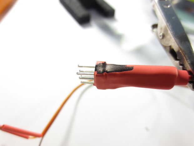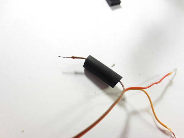 8. Ahora deslice un trozo mediano de calor tubo de contracción en todas las conexiones y asegúrese de que usted sabe de que lado el cable marrón es propio. Encogimiento y tomar un rotulador y dibuje una marca negra en un lado. Esto indica qué lado es el cable negativo.