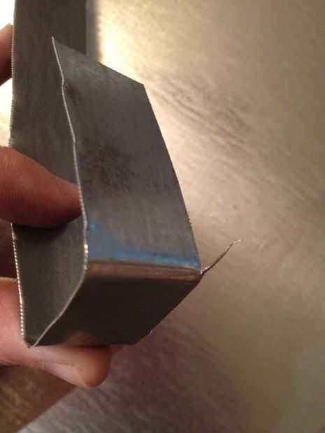 Cuando usted dobla el metal, ten cuidado con las astillas y mueva apagado. También, puesto que usted está usando guantes, usted estará protegido de cualquier borde.