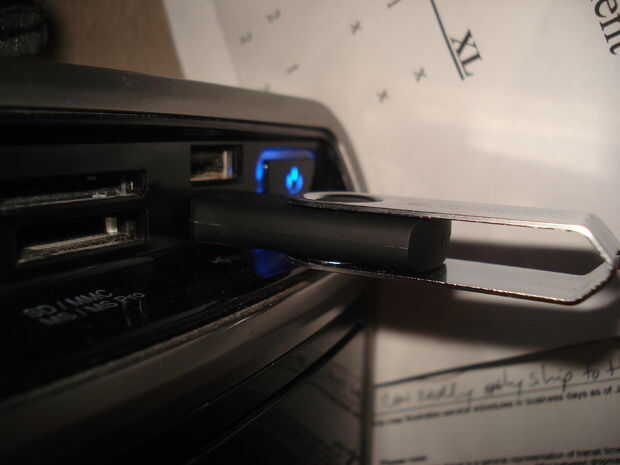 esta tarde fui curioso stick cuántas cintas realmente está envuelto en un casette de audio, es mucho, y durante el proceso de limpiar el desorden destruyó la cubierta de mi vieja memoria 128 de Meg.Así que me quedé con una memoria USB sin ninguna cub