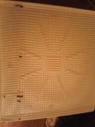 Tras el corte, tomar sus lazos zip y colocar las piezas juntas para hacer un bonito casi cuadrado. Debe encajar en la bandeja con un pequeño cuarto de repuesto en cada lado, si no recortar los lados ahora.