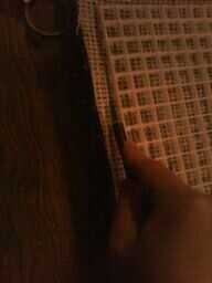 Usando el cuchillo del exacto pop un agujero en la esquina (en segundo lugar uno en diagonal... aquí es aceptable para omitir una plaza) y su amarra segura y a través del cordón. También se puede hacer el punto medio entre las esquinas.