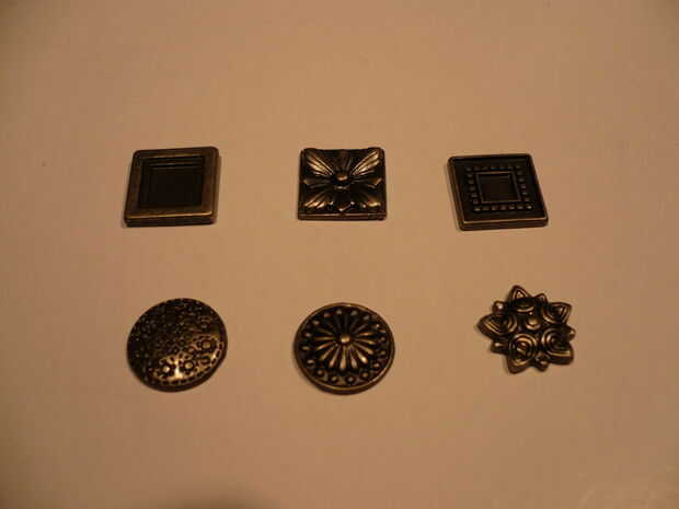 Paso 3: Obtener 54 ronda o levantado cuadrado Metal lengüetas de 6 diseños de diferentes formas de relieve