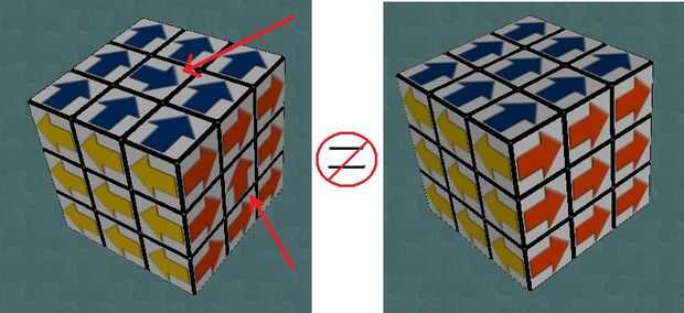 Muchos que son nuevos a los cubos de Rubik son conscientes del hecho de que si usted fuera a dibujar flechas en cada cuadrado del cubo cuando usted lo compra, resolver a la perfección no es tan fácil como algunas piezas no será bien colocadas (flechas en todas direcciones mismo). Ver imagen para entender... ver que los colores son todos en su lugar... pero el cubo no es realmente resuelto. A menos que sepa cómo resolver un cubo como éste... desea asegurar que los diseños en las fichas son simétricos como ya he mencionado.