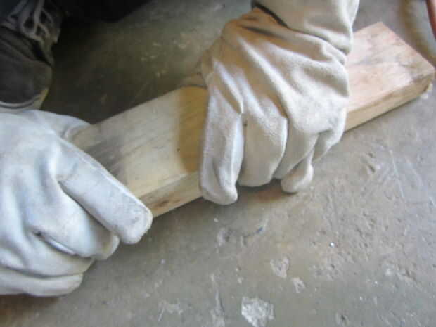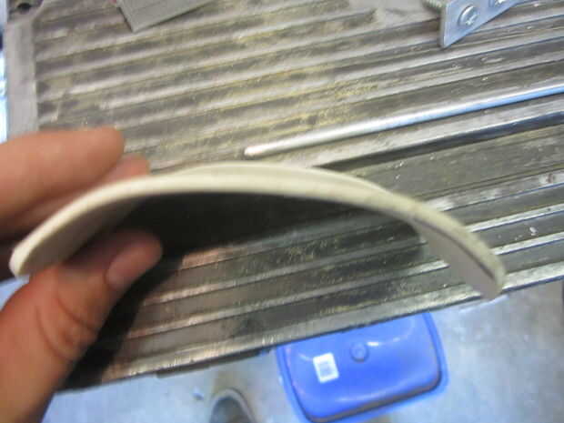 Una vez hecho esto que puede empezar a calentar el tubo con una pistola de calor (tenga cuidado de no quemarla), una vez ha suavizado la ponga en sus guantes y palanca aparte, luego aplanarla entre el 2 x 4. Después de que se haya enfriado sacar aplanar y los cantos en una lijadora de banda. Luego calentarlo otra vez (no como este tiempo) luego presione sobre el 2 x 4 para lograr una forma ligeramente redondeada. Ahora tienes tus Protecciones plásticas