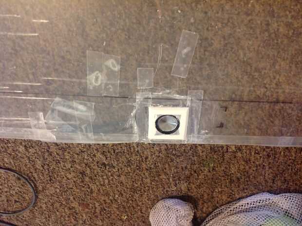 Luego usé la tapa plexiglass final y pegar (con pegamento gorila o JB Weld) el botón para un agujero cuadrado que corte en la forma del bisel táctil cuadrado botón.
