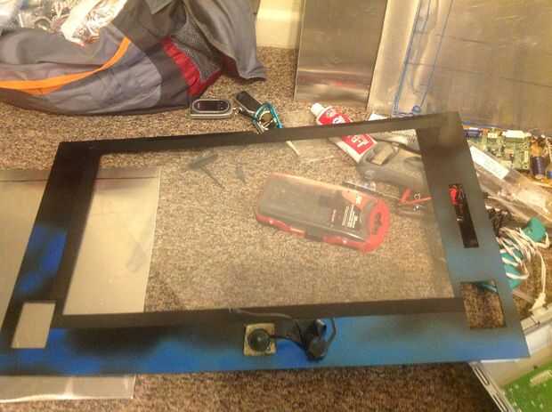 Palillo de la parte de expulsar de la pantalla táctil capacitiva para la parte posterior de la plexiglás desnuda si quieres trabajar en el producto final como el mío lo hace. SU GENIAL. Sólo puede tocar esa zona de plexiglás y la bandeja se expulsará. :)