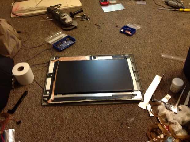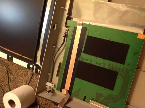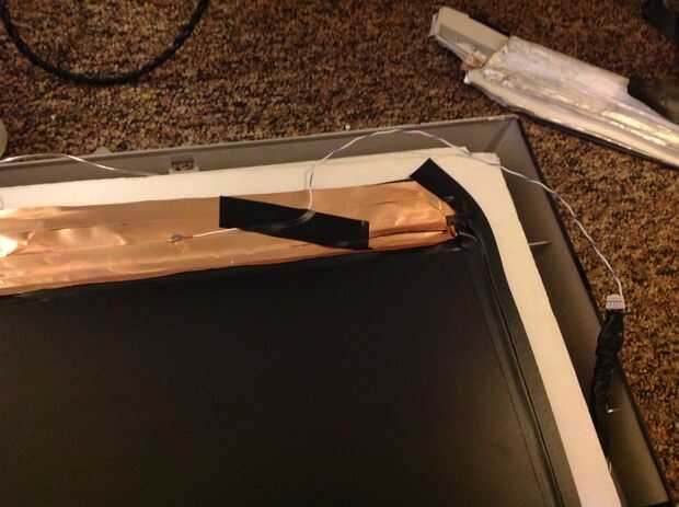 Para hacer esto de la soldadura un cable desde cada blindaje cobre (en alambre extensiones o cualquier otra cosa) a la pantalla LCD tablero de circuito superior apantallamiento de, que se conecta a la tierra de fondo (con cinta de cobre) de la placa de circuito de Wacom como se muestra en la segunda foto.