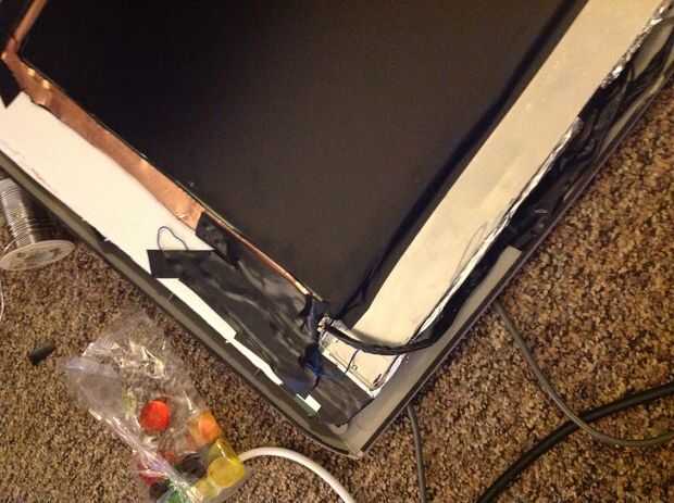Una vez que todos los cables están envueltos en cinta de cobre debe todos conectarse a la tierra misma que es la tableta Wacom.