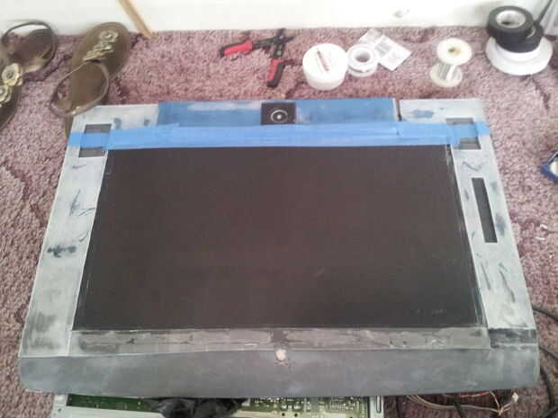 Primero corté el bisel del monitor para tener los botones de pantalla táctil.
