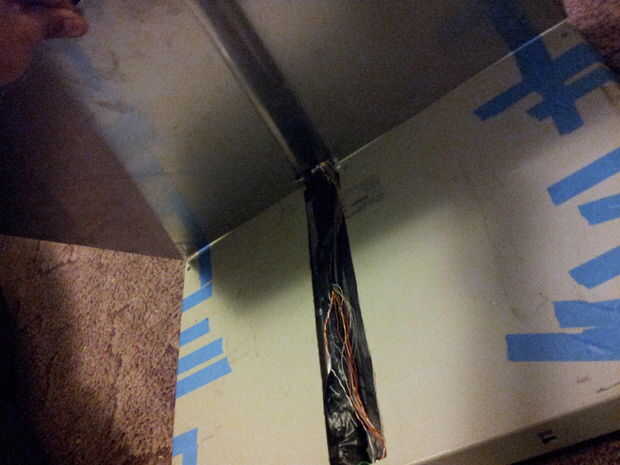 Será necesario un orificio que hizo el aluminio de los cables en. Esto puede hacerse con la Dremel por perforación de un montón de agujeros en forma de un agujero más grande. Entonces la perforación hacia fuera o perforar el aluminio restante hacia fuera.