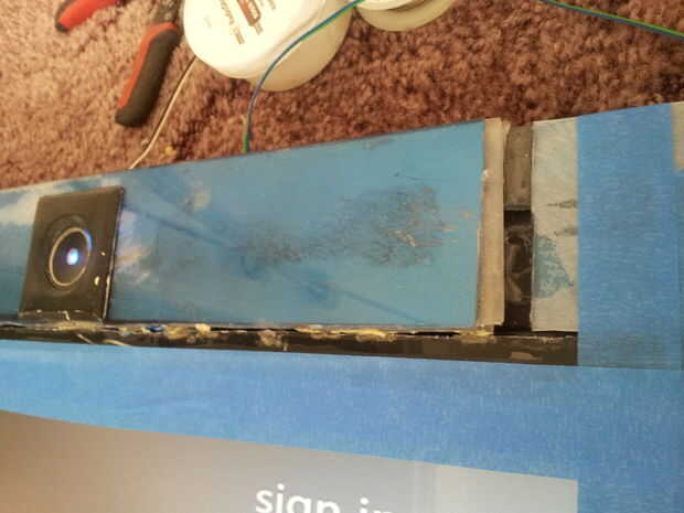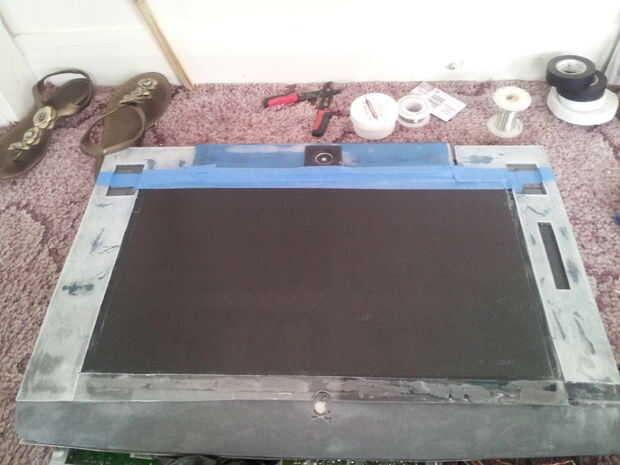 También corté un agujero rectangular para a la franja táctil de monitores.
