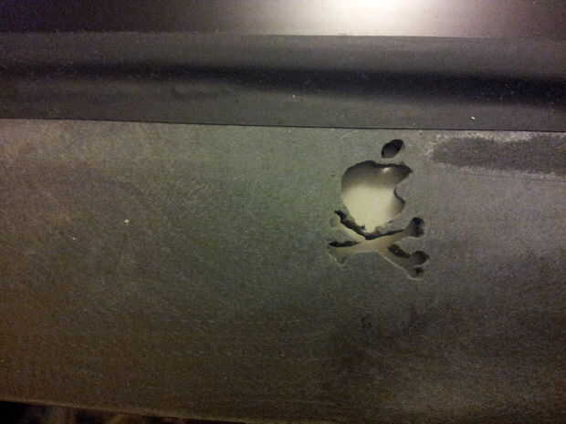 También corté un agujero para el LED bajo luz en la forma de un símbolo de hackintosh. :) se ser refinado más adelante.