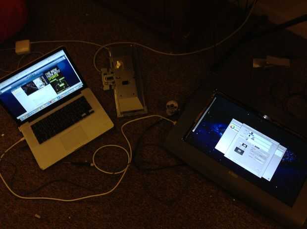 En este punto ahora que su pantalla es despojado y ligan (de cinta) puede opcionalmente probar la tableta de Wacom por primera vez como una Cintiq DIY.