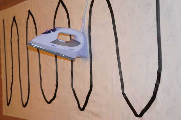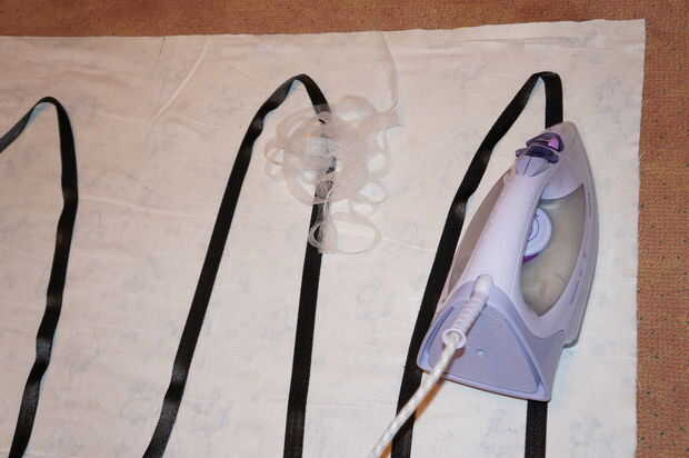Gentlypress cinta carbono withan hierro es stuckto la tela.