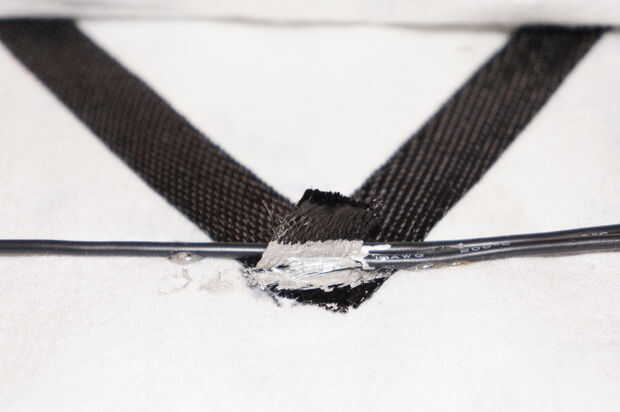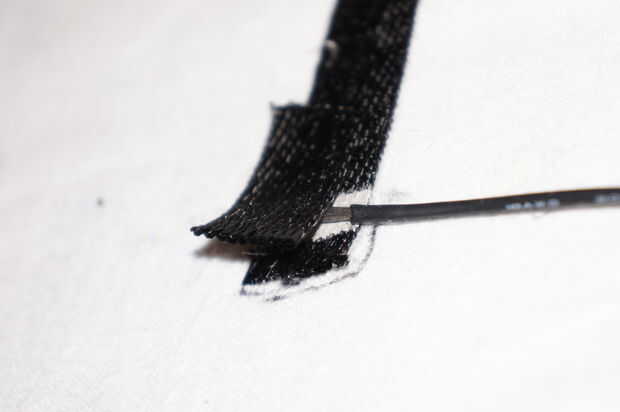 Squeezebetween dos capas ofcarbontapesome silverfrom la jeringa, cable desnudo de insertthe, squeezeglueplaceuntil theglueis completamente seco.