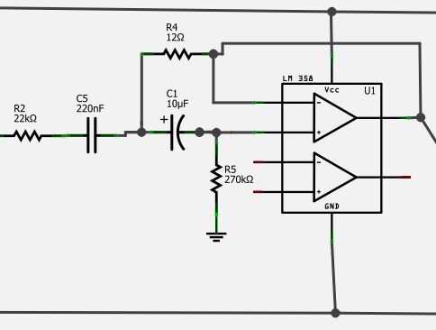 El filtro es más sensible a los cambios en la resistencia de 12 ohmios. Para asegurarse de que la muesca esté centrada a 60Hz, tomar una lectura (detallada en la última etapa) en el extremo del amplificador de instrumentación y, a continuación, a hacerlo una vez la señal ha pasado por el filtro de la muesca. Debería ver una reducción significativa en la amplitud de la banda de frecuencia de 60Hz (gris claro). Si no está centrada en 60Hz, probar con un resistor de 10 ohmios, o incluso una diferente 12 ohmios, como en que la resistencia puede variar fácilmente por una cantidad considerable.