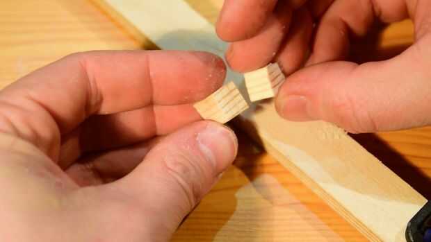 Hice dos pequeños bloques de madera contrachapada (sólido también es utilizable) y luego corté un trozo largo de casi 1"/ 2, 5cm de una barra de 0.5" / 12, 5cm pulgadas
