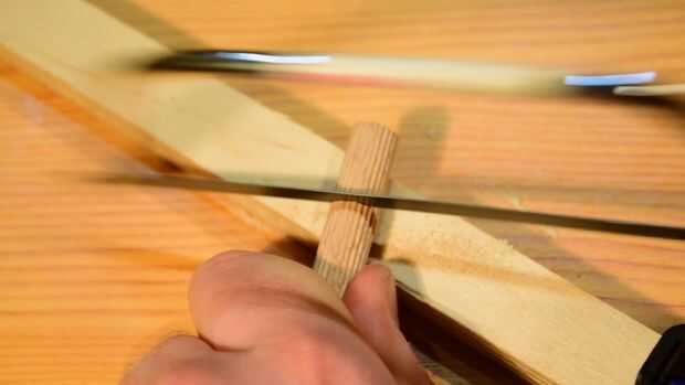 Di una rápida de arena a cada lado para hacer los bloques de madera de casi igual ancho y borde