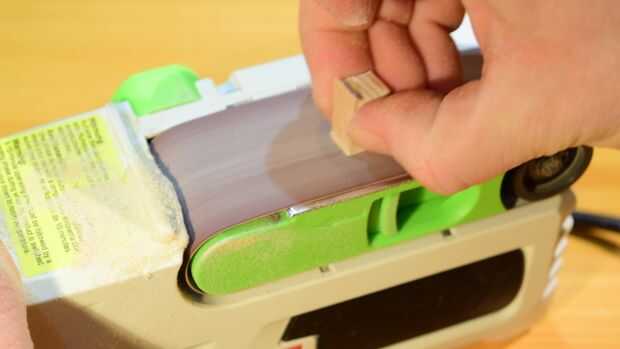 Lijar los lados con una lijadora de banda, pero el proyecto del agujero se puede hacer sólo con herramientas manuales y taladro Para acelerar el proceso que forma cortar la mayoría del material con las tijeras