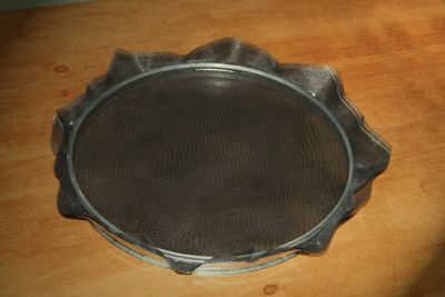 Puso las dos capas de pantalla de la ventana de fibra de vidrio sobre el tambor de aro y llanta cabeza tambor empujado dentro del aro del tambor.