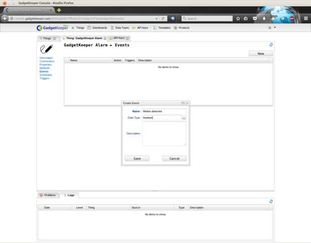 Si necesita instrucciones de interfaz de usuario detallada "punto y haga clic en" cómo crear incluso ver "Crear y desencadenador de eventos" en la documentación de GadgetKeeper.
