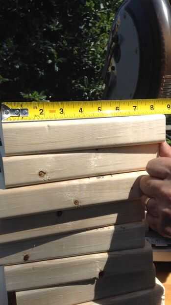 Como se puede ver de este paso es importante. Debe ser 8,5 pulgadas de largo, 1,5 altos y de 2,6 pulgadas de ancho. (Ir en el orden de las fotografías y le quiere a corte de la cantidad se muestra para la anchura) He utilizado 9 tablones (tablón de 11 cuadras) después de todas las matemáticas, tengo unos 4,12 pies de altura para el conjunto total