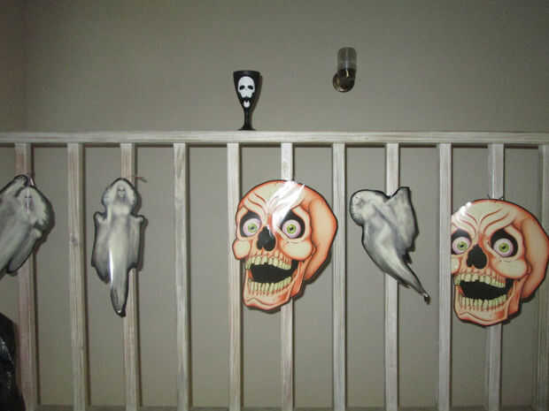 Esto es tanto como tuve. Se puede ver que tenía una lápida, papel, ratones, un hombre muerto, un fregadero sangriento con un cuchillo y algunos brillan en la oscuridad "obsesiones" con una copa. Estas fueron tomadas en el día y el aspecto espeluznante cuando está oscuro.