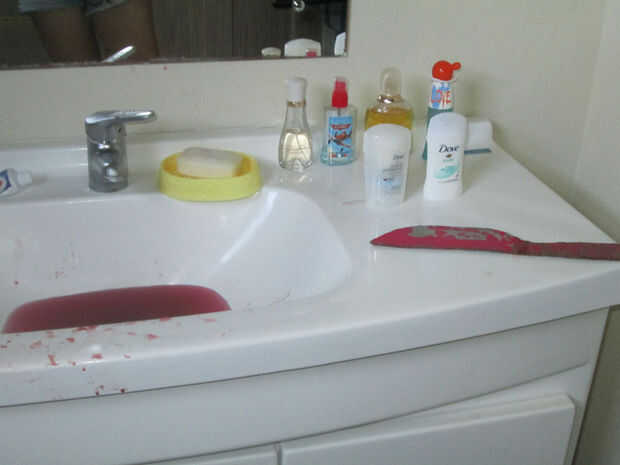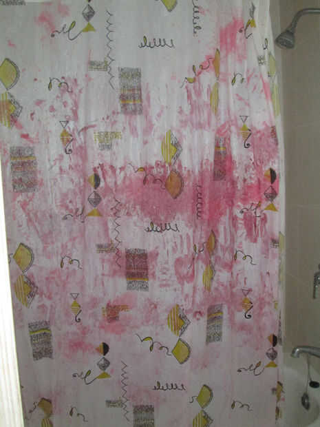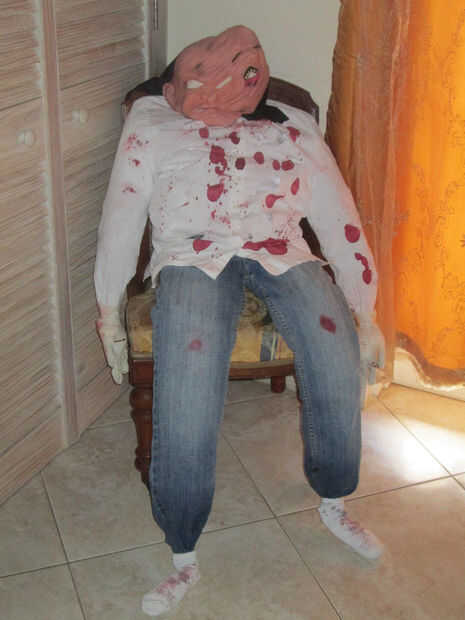 -Baño sangriento (uno que tenía y fácil de hacer, sólo tiene que añadir sangre falsa para la bañera y una cortina de ducha baratas que se puede comprar)