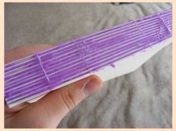 a continuación, pegar la columna vertebral y por encima de las cuerdas. Si lo desea, puede Agregar un marcador de simplemente pegar la cinta en la parte superior de la columna vertebral en este momento. Por supuesto, tendrá que hacerlo el tiempo suficiente para superar la longitud de la columna vertebral.