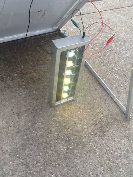 Los maridajes del convertidor DC a DC y LED pueden entonces ser en paralelo hasta en un gran accesorio como se muestra. Recuerde hacer un seguimiento del requisito de potencia total de las unidades terminadas. Cada LED necesita 10 vatios y la potencia necesaria se añade con cada LED. Hacer el seguimiento de la alimentación será importante cuando conectar las lámparas a los paneles solares. Mantenga el requisito de energía del LED con la potencia de salida del panel solar. Hemos encontrado que 120 vatios trabaja de LED bien con paneles solares de potencia de 200 vatios