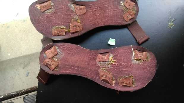 Resbalón de bricolaje en sandalias de zapatos viejos
