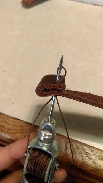 He intentado mi mejor pero puedes ver un vídeo de YouTube en este proceso antes de ir empujando los agujeros en su piel. Vamos a utilizar esta puntada otra vez así que las correas son una buena manera de practicar porque son mucho menos cuero y trabajo para reemplazar a las plantas.