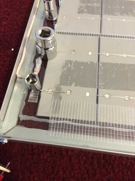 Preparación de la resina mediante la adición de un borde de silicona. Esto evitará que la resina que fluye hacia fuera al borde del cristal y sobre las espaldas del panel en sí. CADA GOTA DE ENCAPSULANTE CUENTAS!