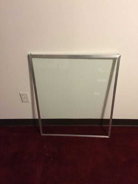 Aplicar el silicón en el bastidor, poner en el vaso y presione hacia abajo para asegurar un buen contacto, deje que se seque la silicona (toda la noche sin duda sería mejor) y utilice espaciadores como repuesto las piezas de madera para proteger su piso, alfombra o tabla. El marco de lo que se está secando en. No quiero levantar pedazos de alfombra en la silicona seca.