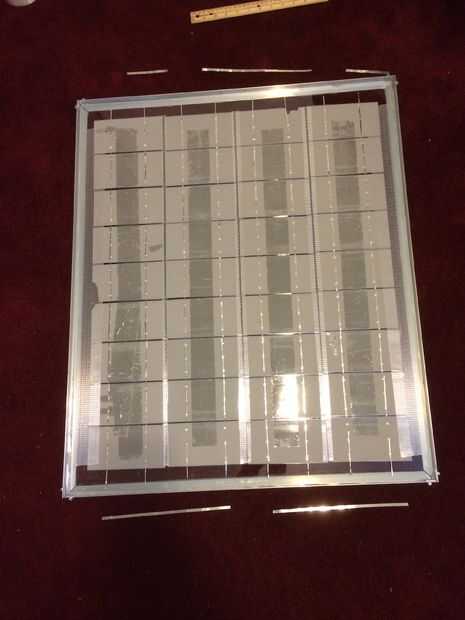 Estoy fuertemente lo que se refiere mi foto aquí. Las barras no se sueldan en su lugar y se muestran para dar una guía sobre cómo realizar el cableado de serie. Usted necesitará alrededor de dos de las cuatro filas del tirón y por eso necesita ficha las partes posterioras de las células. Las barras son simplemente grandes versiones de sus contrapartes tabulación de alambre pero me gustaría sugerir algunos soldadura adicional para asegurar a la unión entre el bus y el cable de tabulación.