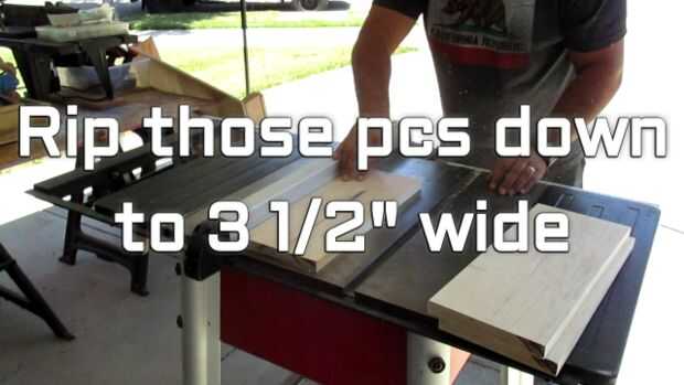 Una vez que las piezas cortadas a la medida, me hice cargo en mi sierra de mesa y los arrancó hasta 3 1/2 pulgadas de ancho. Supongo que usted puede hacer más estrecha o más ancha, pero pulgadas 3 1/2 me pareció un buen tamaño así que me fui con él.