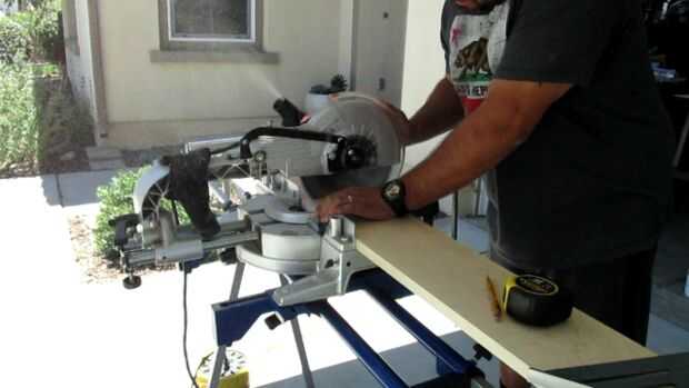 Usé mi sierra para romper la pieza de arce de tres piezas 16 pulgadas de largo. Puesto que se trata de un triángulo equilátero, los tres lados sea la misma longitud y los tres ángulos son iguales también.