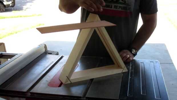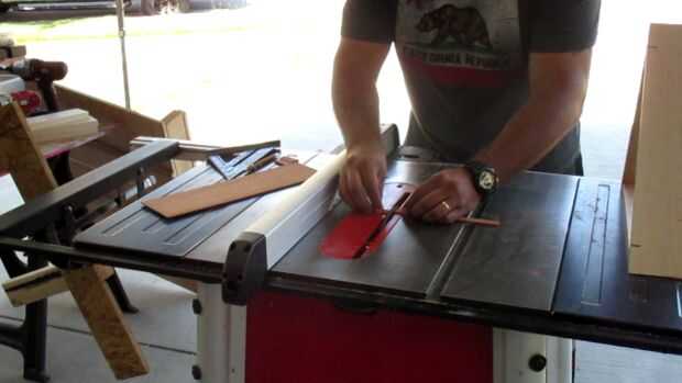 Utilicé una pieza de caoba que ya estaba el grueso de mi cuchilla pero si no tienes una pieza puesta alrededor como yo lo hice, usted tendrá que cortar un trozo de madera que es aproximadamente 1/16 de pulgada de grosor. Debe poder deslizarse en la ranura bastante fácilmente.