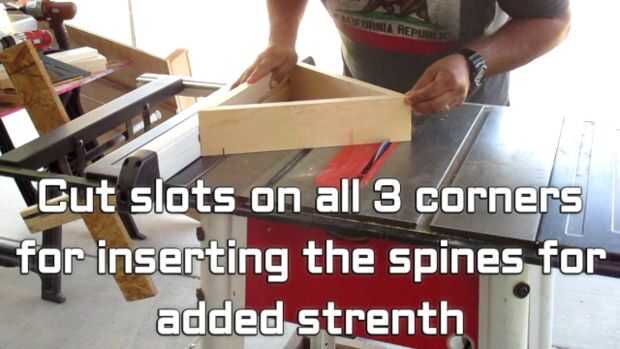 Puse mi hoja a 1/2 profundidad y ajustar mi valla para que con el borde plano del triángulo contra ella, la hoja fue aproximadamente en el centro de la articulación. Luego corrí el triángulo sobre la hoja en ambos lados de cada articulación para producir una arboleda que albergará las espinas.