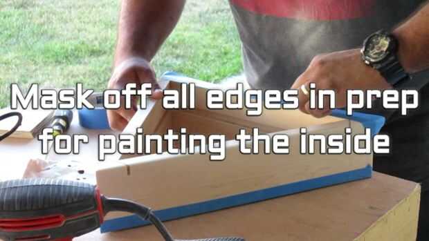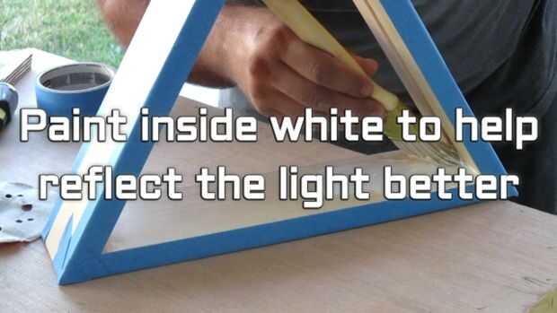 Usé cinta de pintor azul otra vez a la máscara de todos los lados para que pudiera pintar el interior de los blancos de triángulo para reflejar mejor la luz. Apliqué un total de 3 capas e hizo un ligero lijado entre cada capa con papel de grano arena 220.