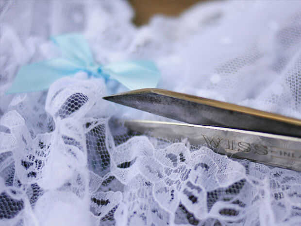 Paso uno: usted puede DIY su propio sujetador como lo hice aquí. La única diferencia es que es necesario utilizar a un sólido tejido elástico versus encaje, y tendrá que teñir el triángulo de tela antes de coser todo junto. Compré un poco ropa interior con conjunto de Burlington Coat Factory porque era $9,99 y pensé que era super bonito! Aquí mi primer paso fue separar el cuerpo del sujetador.